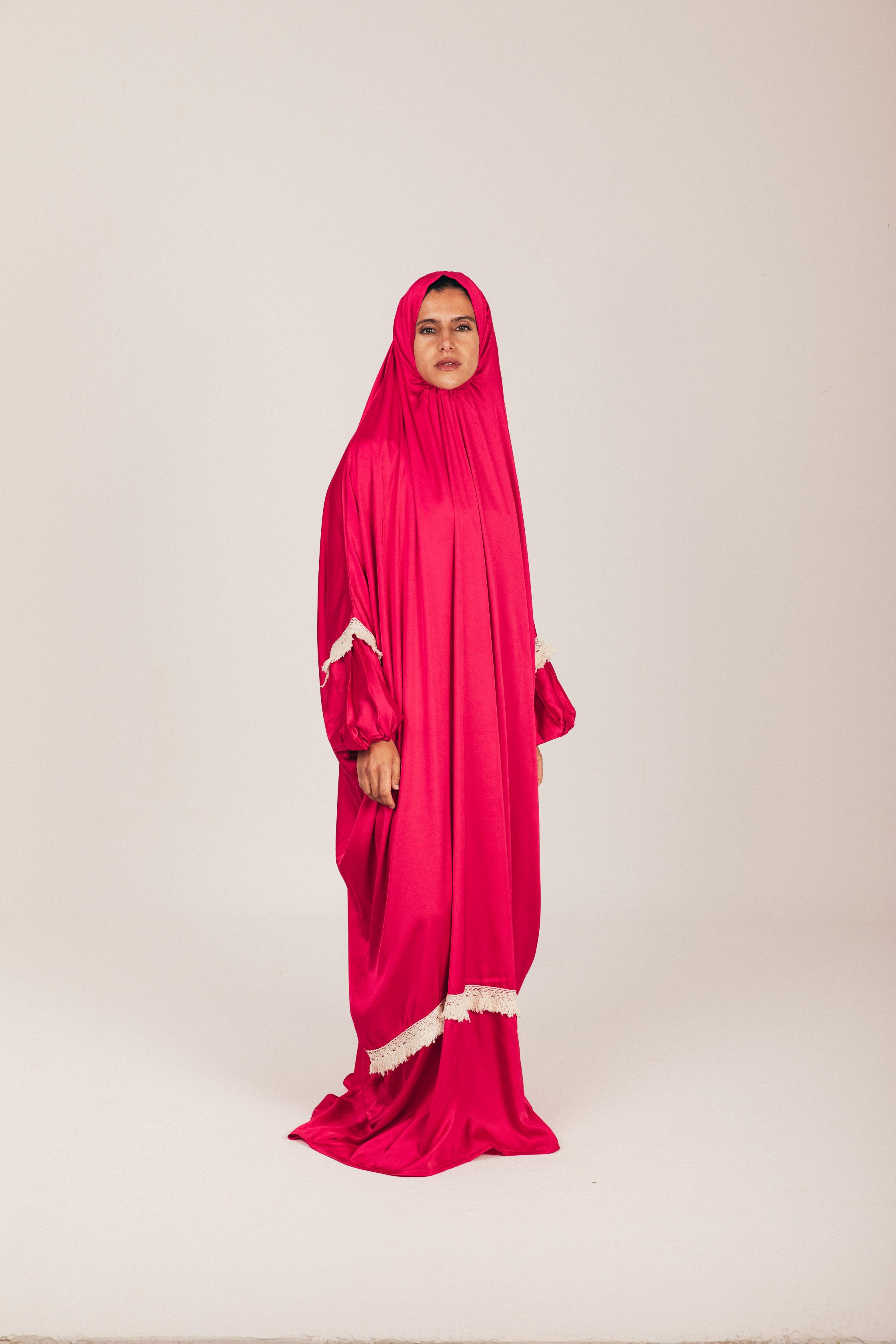 Fuchsia Satin Prayer Wear with Scarf